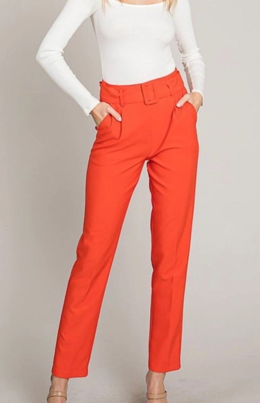 High Rise Slim Fit Pant With Belt