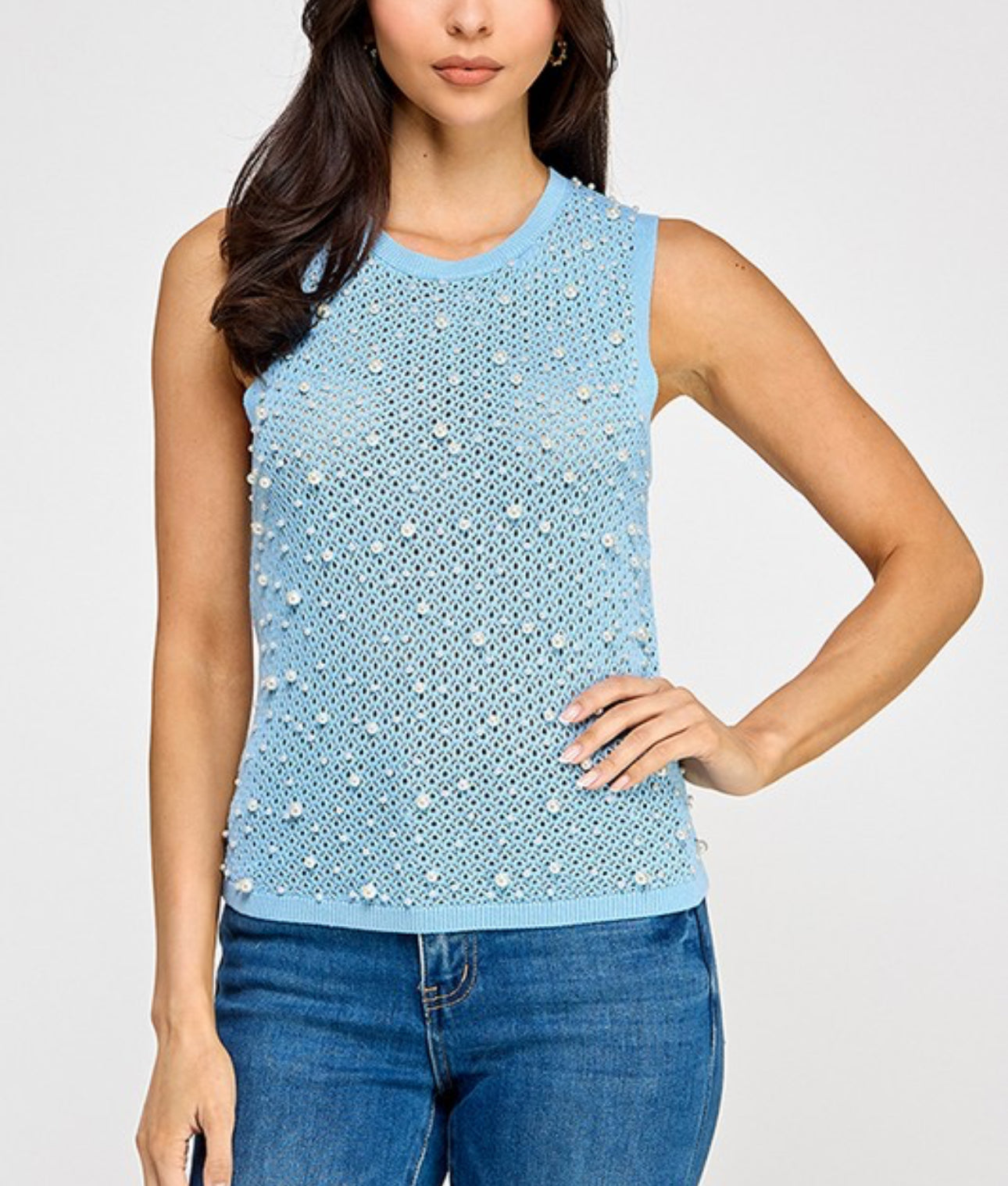 Blue Knitted Pearls Top